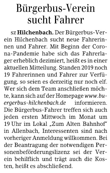 08.02.2022 - Bürgerbus-Verein sucht Fahrer