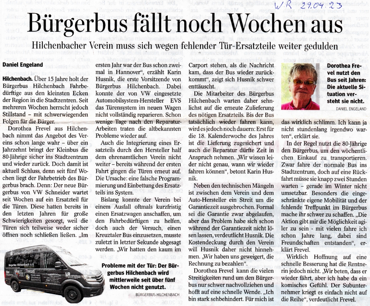 29.04.2023 - Bürgerbus fällt noch Wochen aus