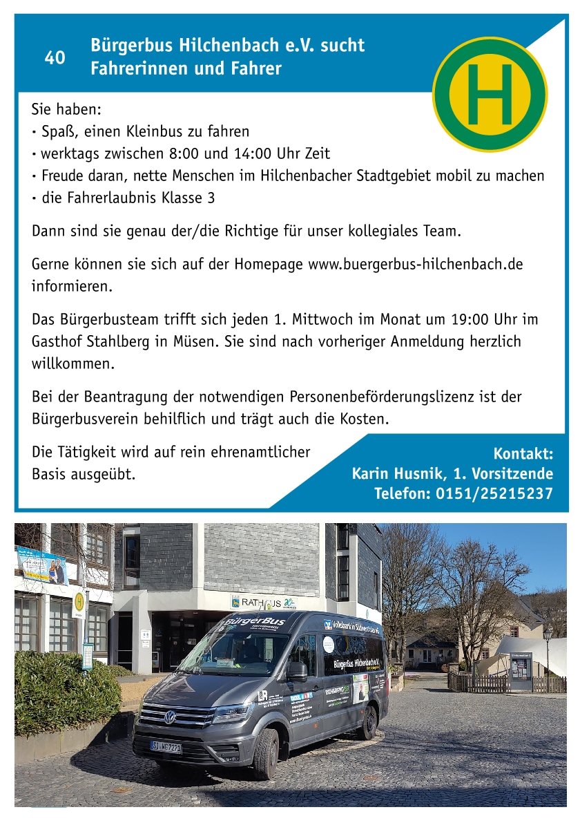 15.03.2025 - Bürgerbus Hilchenbach e.V. sucht Fahrerinnen und Fahrer